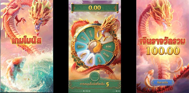 - ซึ่งท่านจะต้องกดที่คำว่า “การหมุน” มังกรจะพ่นไฟหมุนไปรอบวงล้อและเมื่อหยุดลงที่ใดก็จะได้รับรางวัลตามจำนวนที่เขียนไว้