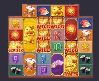 ตัวเกมมาในรูปแบบของวิดีโอสล็อตขนาด 6 รีล 5 แถว เพย์ไลน์จำนวน 2,025-32,400 รูปแบบ อัตราการคูณรางวัลสูงสุด x20,000 เท่า RTP 96.73% โดยมีสัญลักษณ์ภายในเกมเกี่ยวกับ แมว และ สิ่งของนำโชค ได้แก่ แมวกวัก โคมไฟ กลอง พัด ซูชิข้าวปั้นหน้าต่างๆ ซึ่งแจกทั้งโบนัสอัตราการคูณ รางวัล แจ็คพอต และฟรีสปินเพียบ
