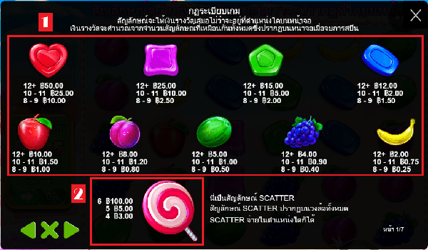 1.สัญลักษณ์ผลไม้และแคนดี้